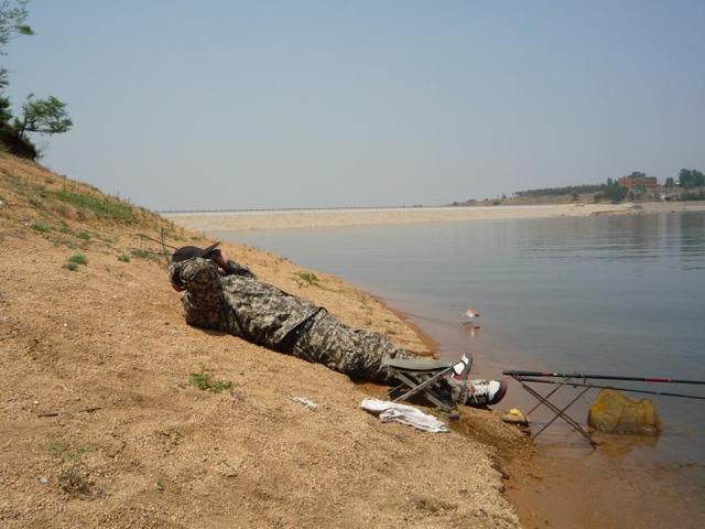 我做的竿架子通常可以同时架设三到四支鱼竿,当然了,大多数时候只架设一两支就够用了,但是它有三四个凹槽,也就是说可以随时调换鱼竿位置,鱼不咬钩的话,我可以让竿子左边挪右边、右边挪左边地去搜索。