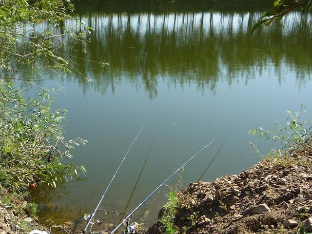 我做的竿架子通常可以同时架设三到四支鱼竿,当然了,大多数时候只架设一两支就够用了,但是它有三四个凹槽,也就是说可以随时调换鱼竿位置,鱼不咬钩的话,我可以让竿子左边挪右边、右边挪左边地去搜索。
